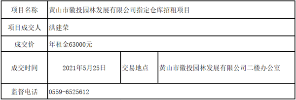 黄山市乐动(中国)园林发展有限公司指定仓库招租交易成交公告