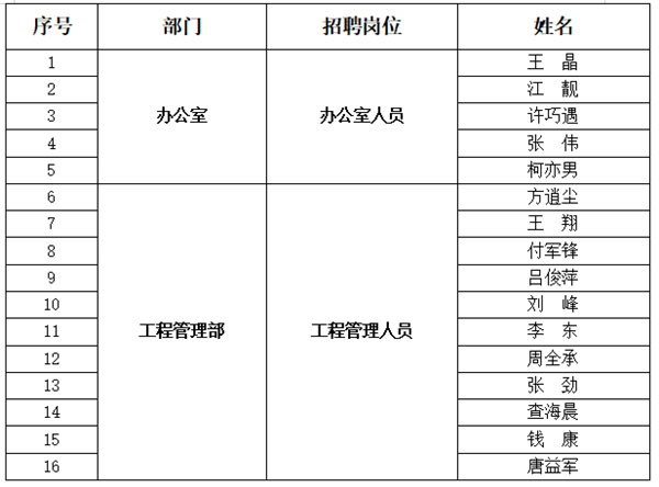 黄山中惠旅湖田山旅游开发有限公司招聘员工的报名和资格初审工作现已全部结束,根据2021年11月30日发布的《黄山中惠旅湖田山旅游开发有限公司招聘公告》,经初审,王晶等16人资格初审合格,现予以公布。具体人员名单如下: