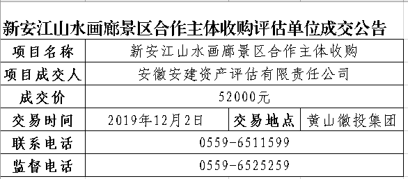 新安江山水画廊景区合作主体收购评估单位成交公告